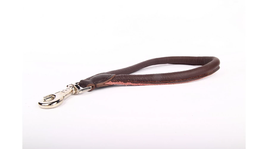Pórázra csatlakoztatható bőr fogantyú a biztos és kényelmes fogáshoz. Kézzel készült, kíváló minőségű nappa bőr. Barna színű.