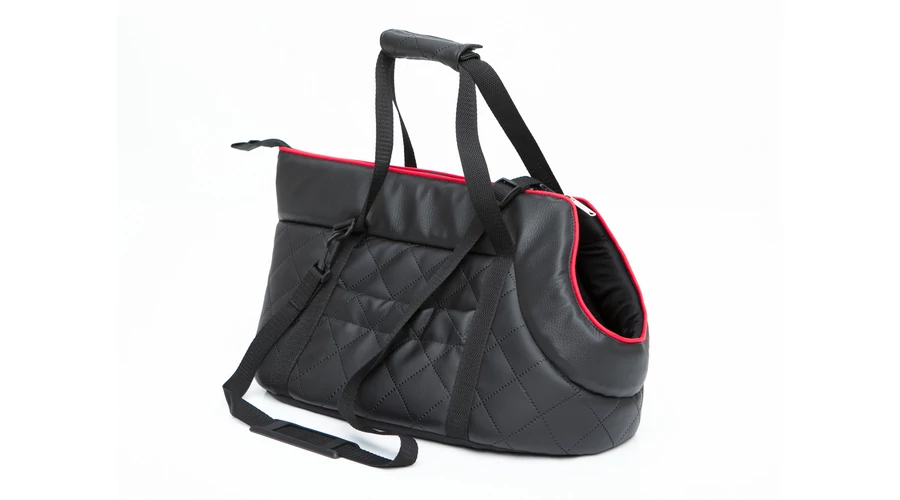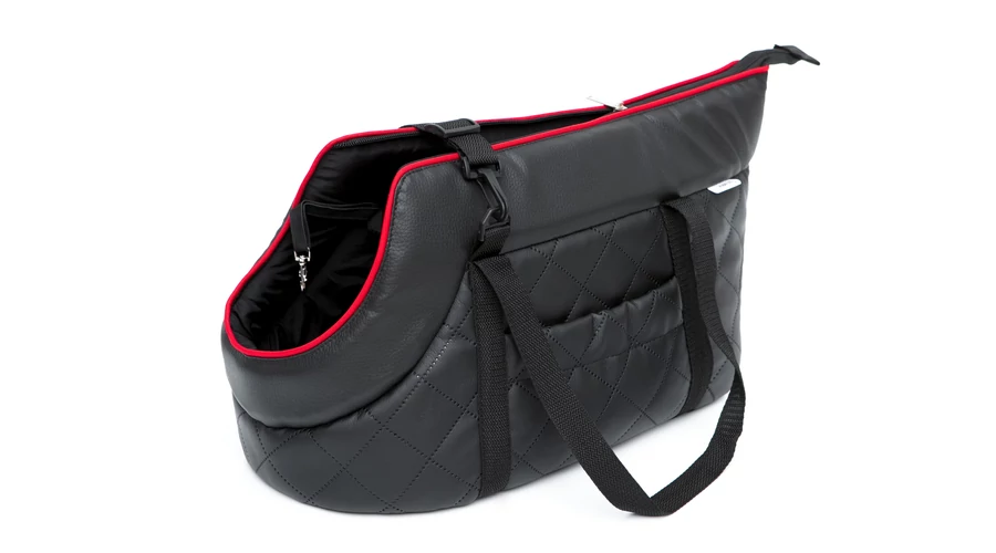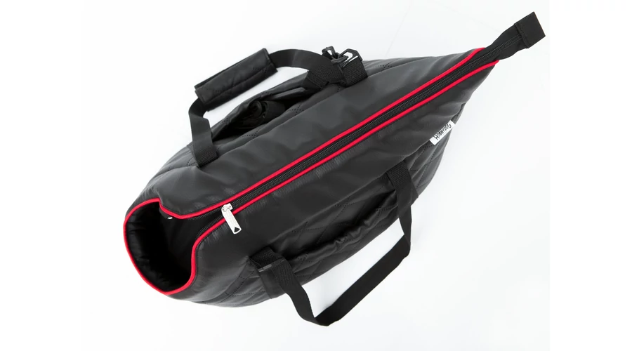 Kisméretű kutyák és cicák szállítására alkalmas bőr válltáska. A kutya nyakörve a táskára kapcsozható. A lyuknál kihúzható párna kényelmesen tartja a kutya fejét. Ellenálló a víznek, deformációnak és a szennyeződéseknek. Könnyen tisztítható, 30 fokon mosható.