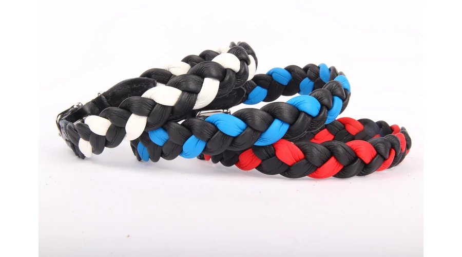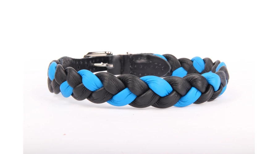 Fonott bőr nyakörv - Kék
