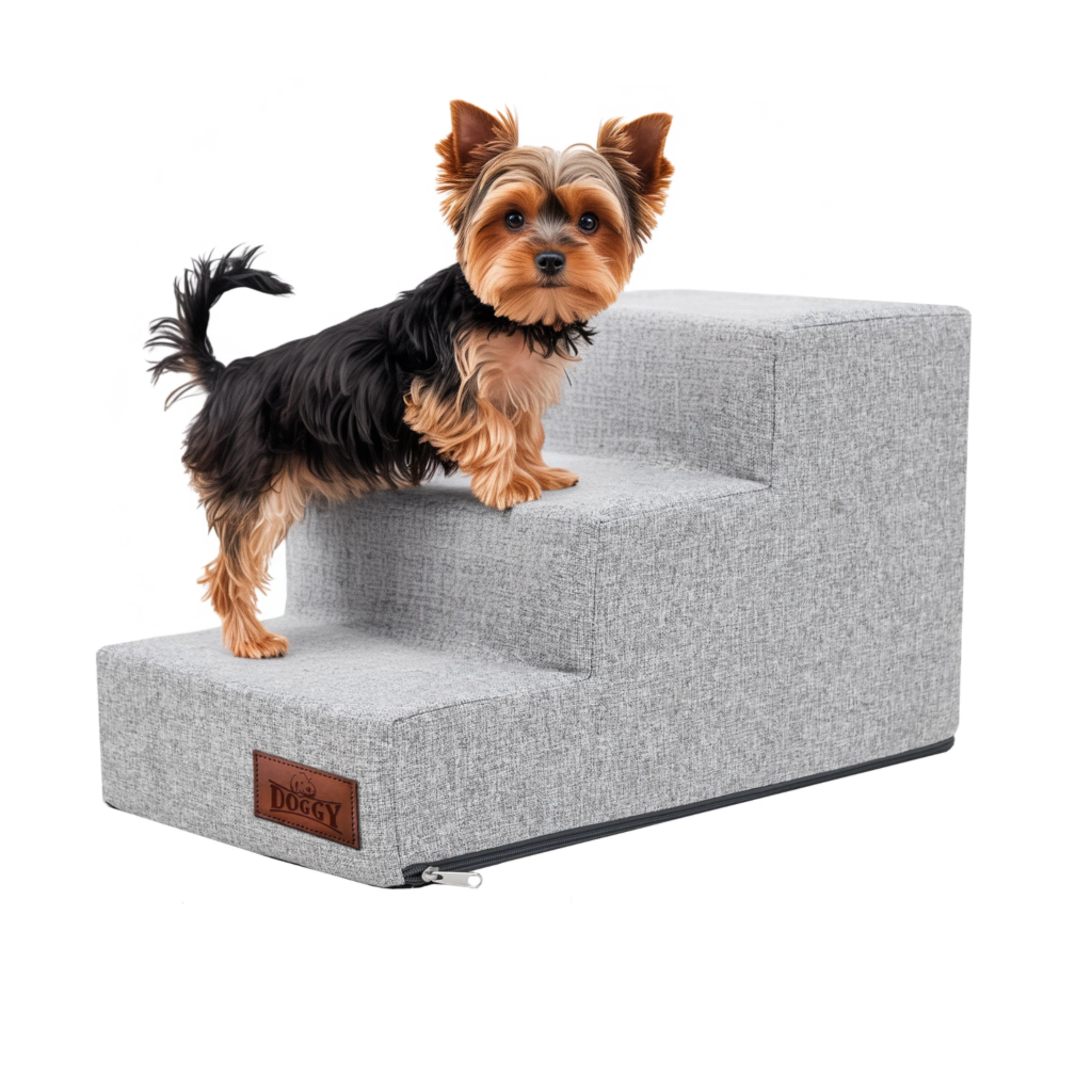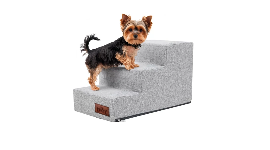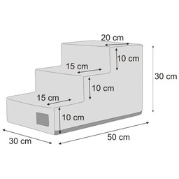 Lenvászonhoz hasonló, ám annál jóval ellenállóbb Inari anyagból készült lépcső. Kis méretű, idős vagy beteg kutyáknak nagy segítség, hogy feljussanak magasabb helyekre. A lépcső egyetlen nagy szivacsból áll, aminek a huzata cipzárral levehető és akár mosógépben is mosható.