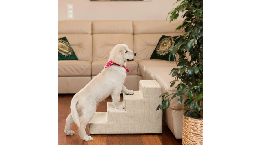 Lenvászonhoz hasonló, ám annál jóval ellenállóbb Inari anyagból készült lépcső. Kis méretű, idős vagy beteg kutyáknak nagy segítség, hogy feljussanak magasabb helyekre. A lépcső egyetlen nagy szivacsból áll, aminek a huzata cipzárral levehető és akár mosógépben is mosható.