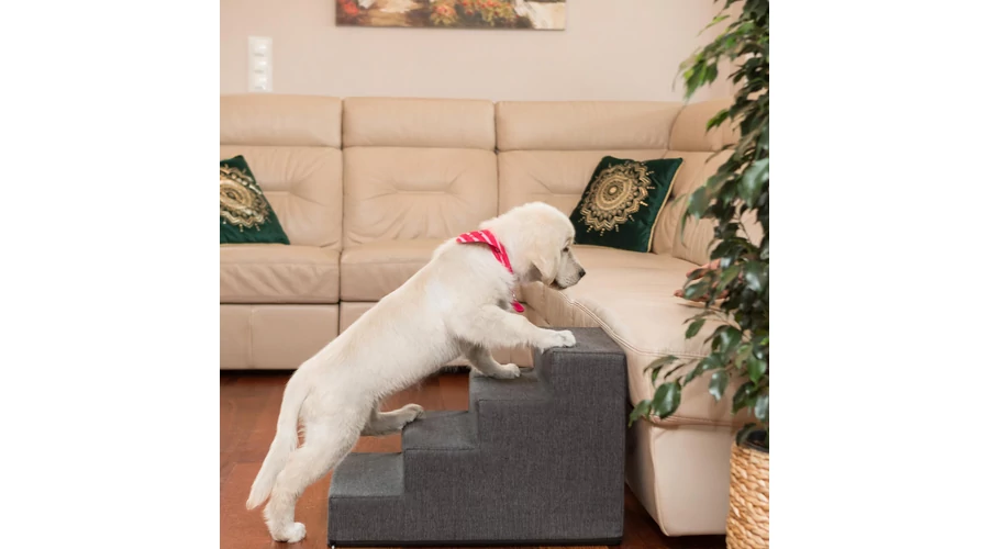 Lenvászonhoz hasonló, ám annál jóval ellenállóbb Inari anyagból készült lépcső. Kis méretű, idős vagy beteg kutyáknak nagy segítség, hogy feljussanak magasabb helyekre. A lépcső egyetlen nagy szivacsból áll, aminek a huzata cipzárral levehető és akár mosógépben is mosható.
