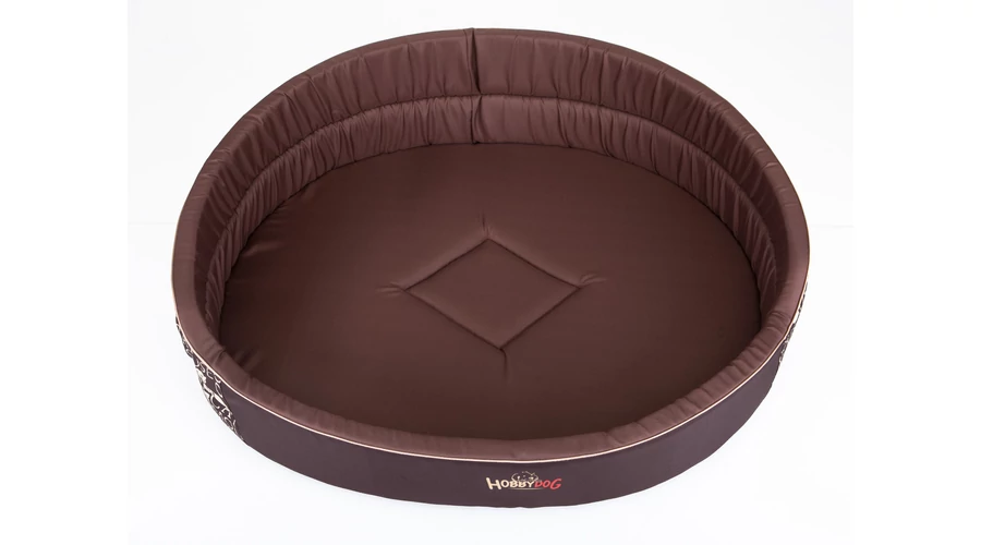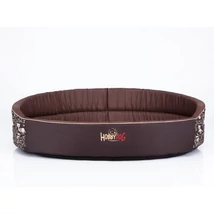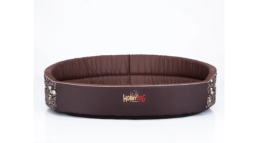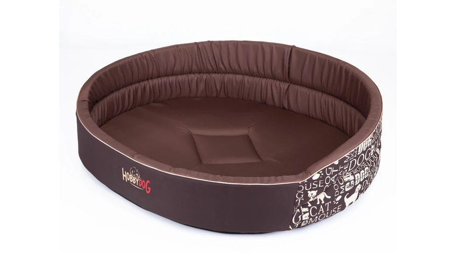 Ovális szivacs kutyaágy és macskaágy - felirat mintás barna